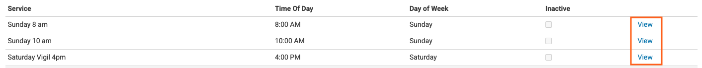 - Service - Add whatever service description you'd like. Your description may look like "Sunday 8:00 am Mass".