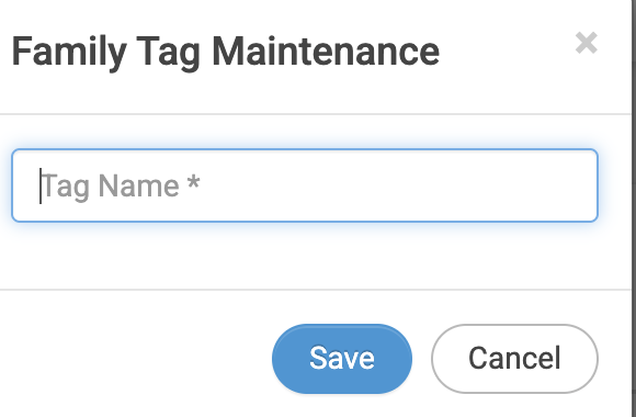 - A Family Tag Maintenance pop-up box will appear. Type your desired Tag Name, then click Save.