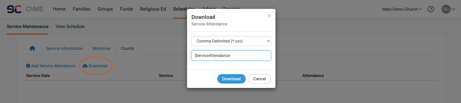In addition to the download, you can go to Reports Report Library to generate the Mass Attendance Count Report.