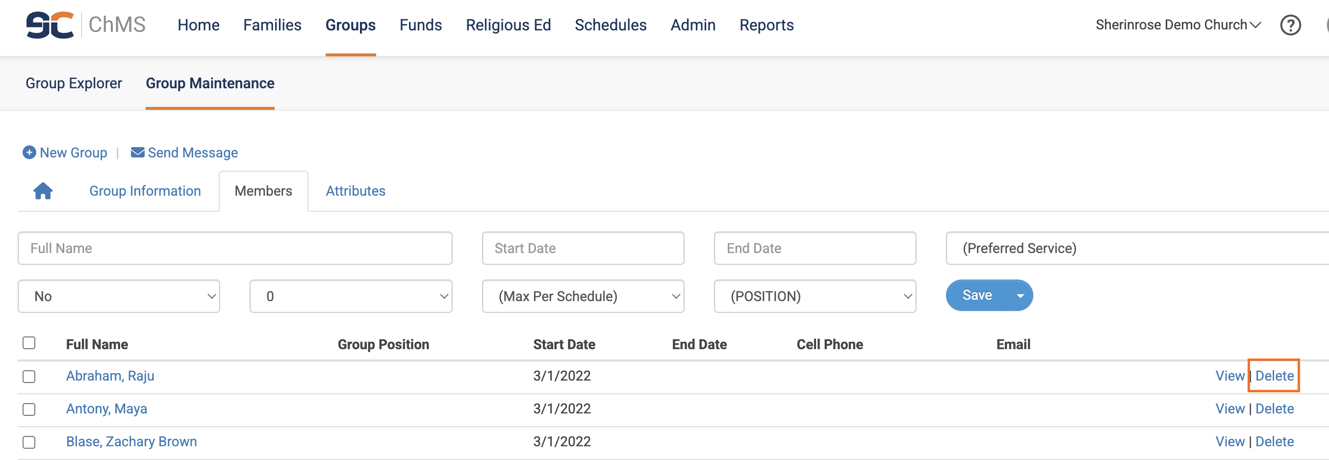 - To delete a member from a group, simply select the Delete button next to the group you wish to delete the member from.