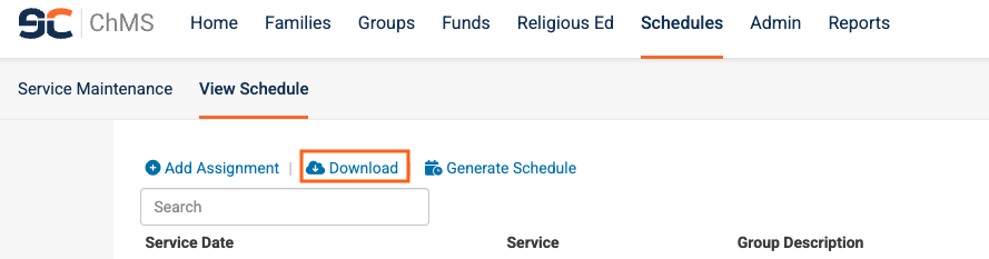 Immediately after creating your schedule (or you can go to Schedules > View Schedule) click the Download button found near the top-left of your screen.
