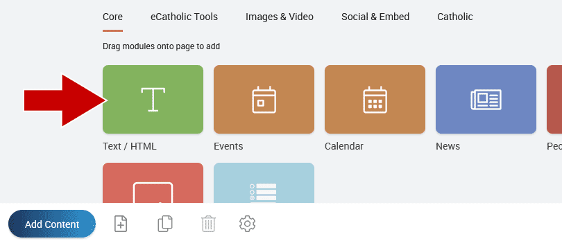 Drag and drop a Text/HTML module onto the page and add text