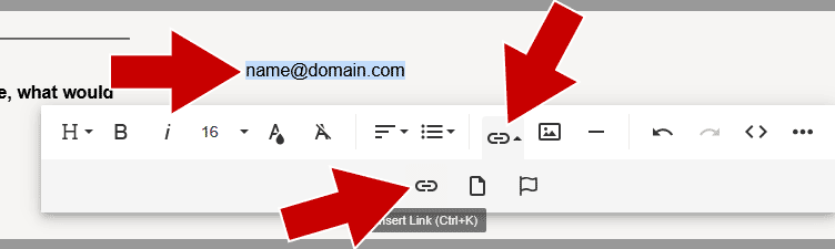Select your text and click the link icon