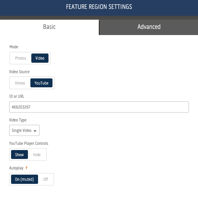 Once you've enabled Video Mode, configure the Basic settings to add your video and control its appearance.