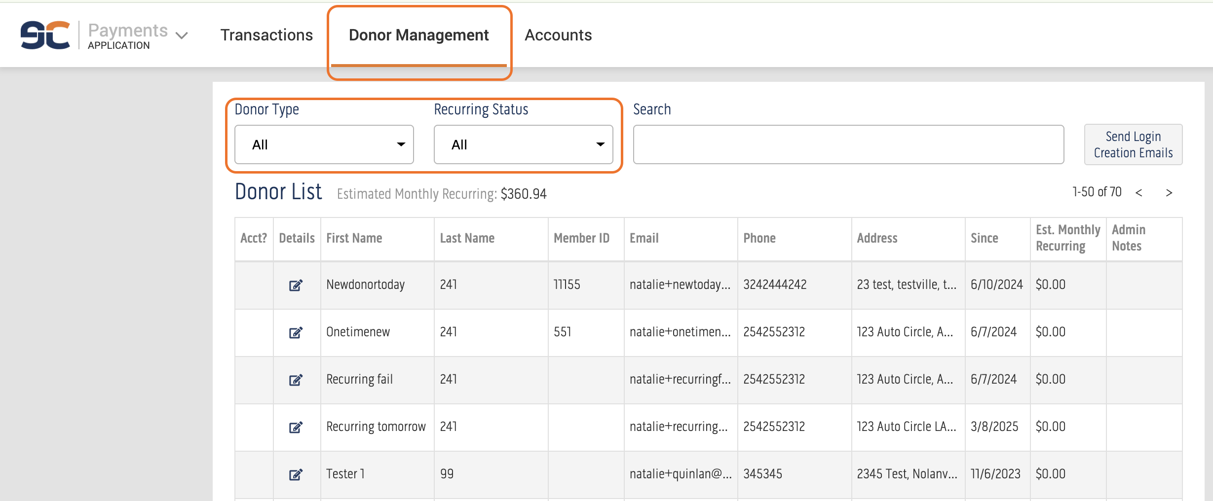 Next, click the Donor Management tab to view your complete list of donors.