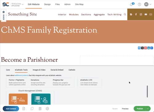 - If not already synced, connect your eCatholic website and ChMS account (view instructions here), as this module will only appear once your technologies are integrated.